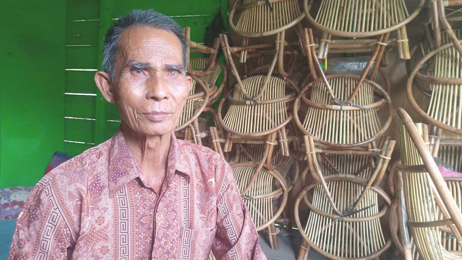 Edi (53) salah seorang pengerajin rotan sejak tahun 2018 hingga saat ini telah menjual berbagai macam produk, mulai dari kursi, meja, mainan anak-anak, serta masih banyak produk yang dijualnya.