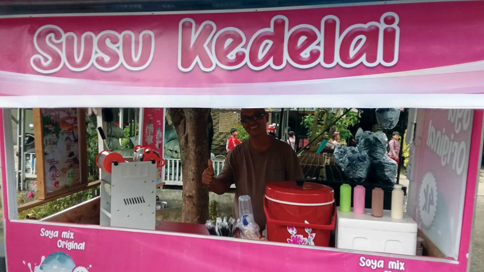 Salah satu penjual susu kedelai yang beralamat di Desa A Widodo Kecamatan Tugumulyo Kabupaten Musi Rawas (Mura) Provinsi Sumatera Selatan (Sumsel).